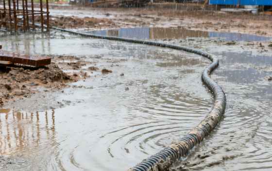 雨天施工時,電力電纜隨意拖地并浸泡于積水中,構成顯著安全隱患。電纜絕緣層在潮濕環(huán)境中易受損,尤其是已有磨損或老化跡象的電纜,絕緣性能會進一步下降。積水中可能混有金屬碎屑、化學物質或鹽分,形成導電介質,增加漏電風險。接口處、破損點若被水浸入,會導致內部導體暴露,可能引發(fā)短路。
