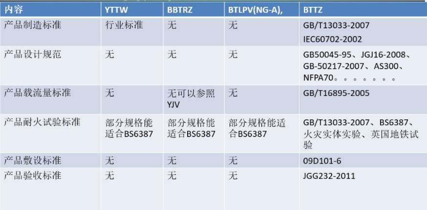 目前市場銷售較好的BTTZ 、YTTW、BTLY、BBTRZ主流四種型號,其中YTTW燃燒后云母帶會脆裂粉化;BTLY彎曲性能受限;BTLY和BBTRZ氫氧系阻燃劑調(diào)配防火泥材料無絕緣性能,