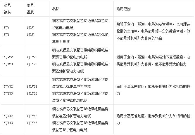 主要型號有:YJV ZC-YJV NH-YJV ZB-YJV ZA-YJV
